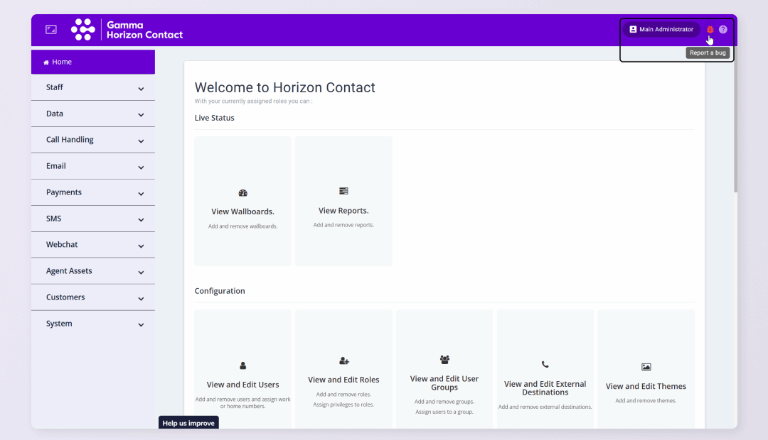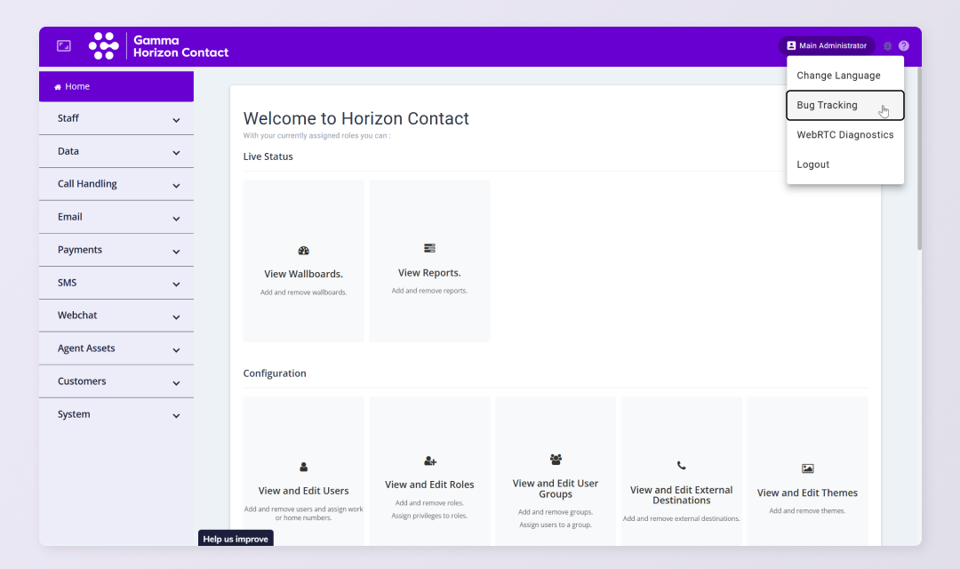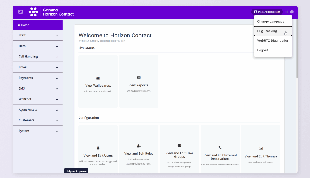 In order to make it easier to capture the required information a bug tracking tool is available within Contact that can be turned on and off when needed.