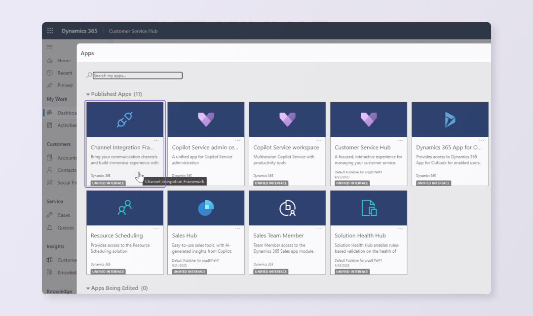 Channel Integration Framework should now appear in your Dynamics accounts.