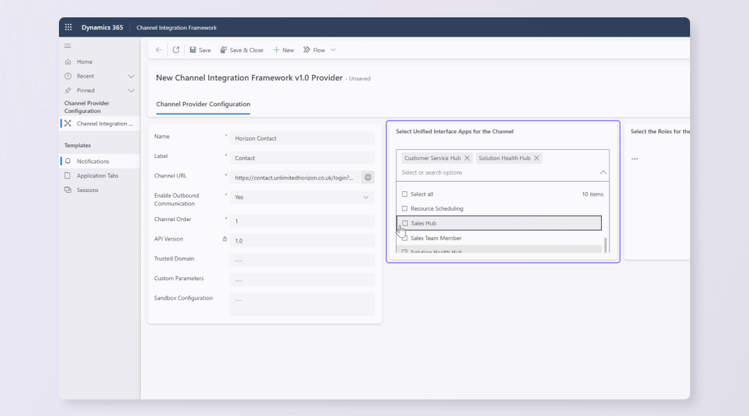 The next step is to update the Channel Communication Control so that it embeds the Horizon Contact Phone Dialler within Dynamics. This allows agents to make calls through Contact when accessing their Dynamics CRM contacts