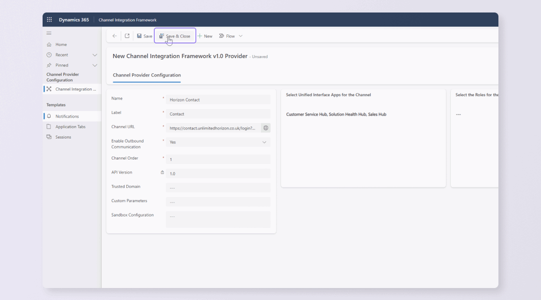 The first step is to enable the connection between Microsoft Dynamics and Contact utilising Microsoft’s Channel Integration Framework.