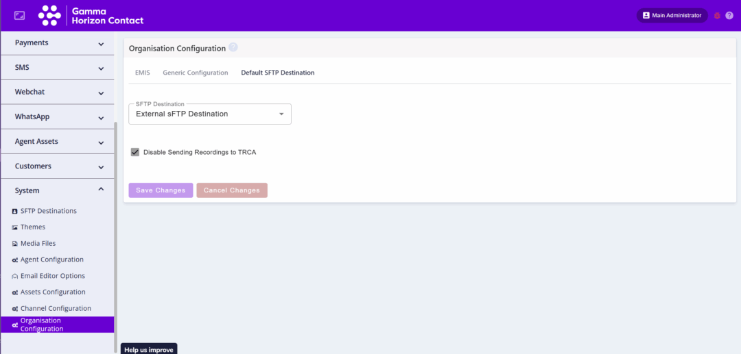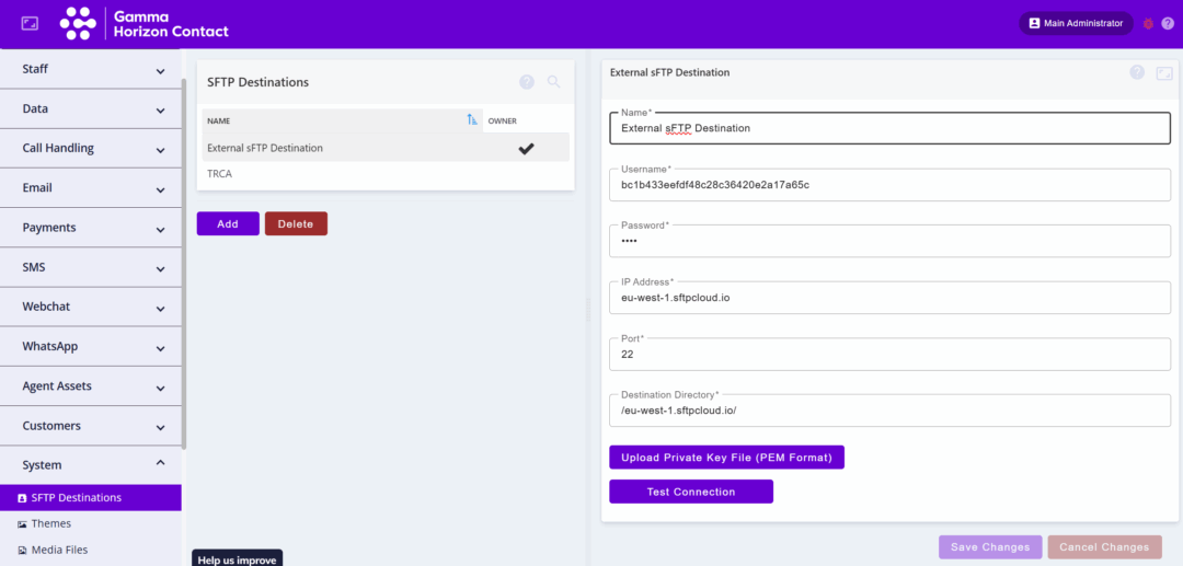 We have added the ability for administrators to set up their own SFTP destination for call recordings. This is useful for if customers want functionality different to the Horizon call recording platform (TRCA).